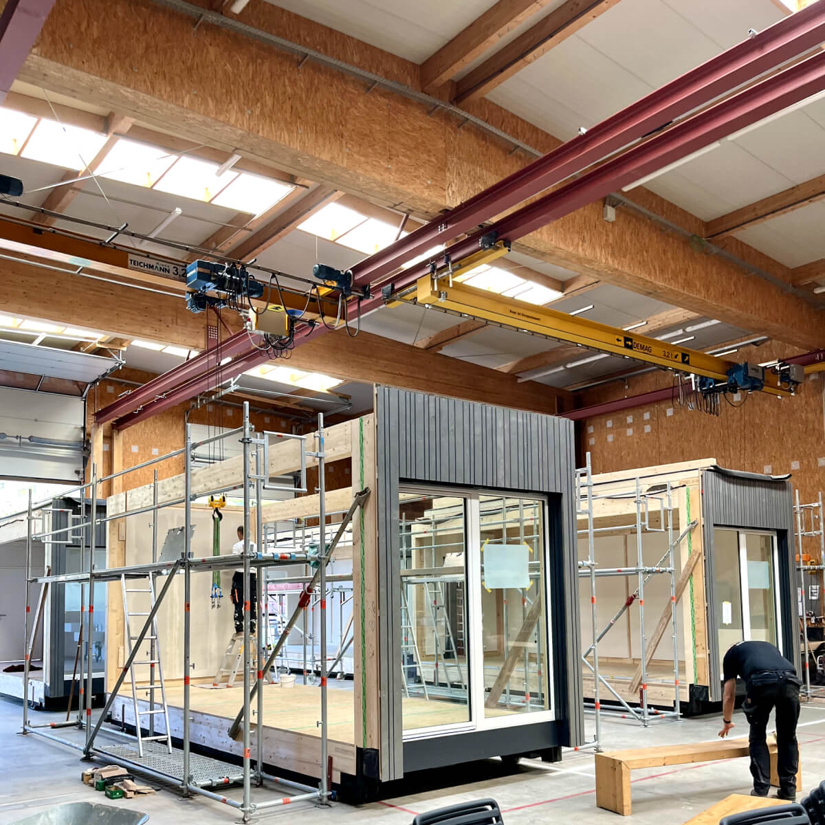 HERSTELLUNG VON HOLZHÄUSERN IN DER HALLE